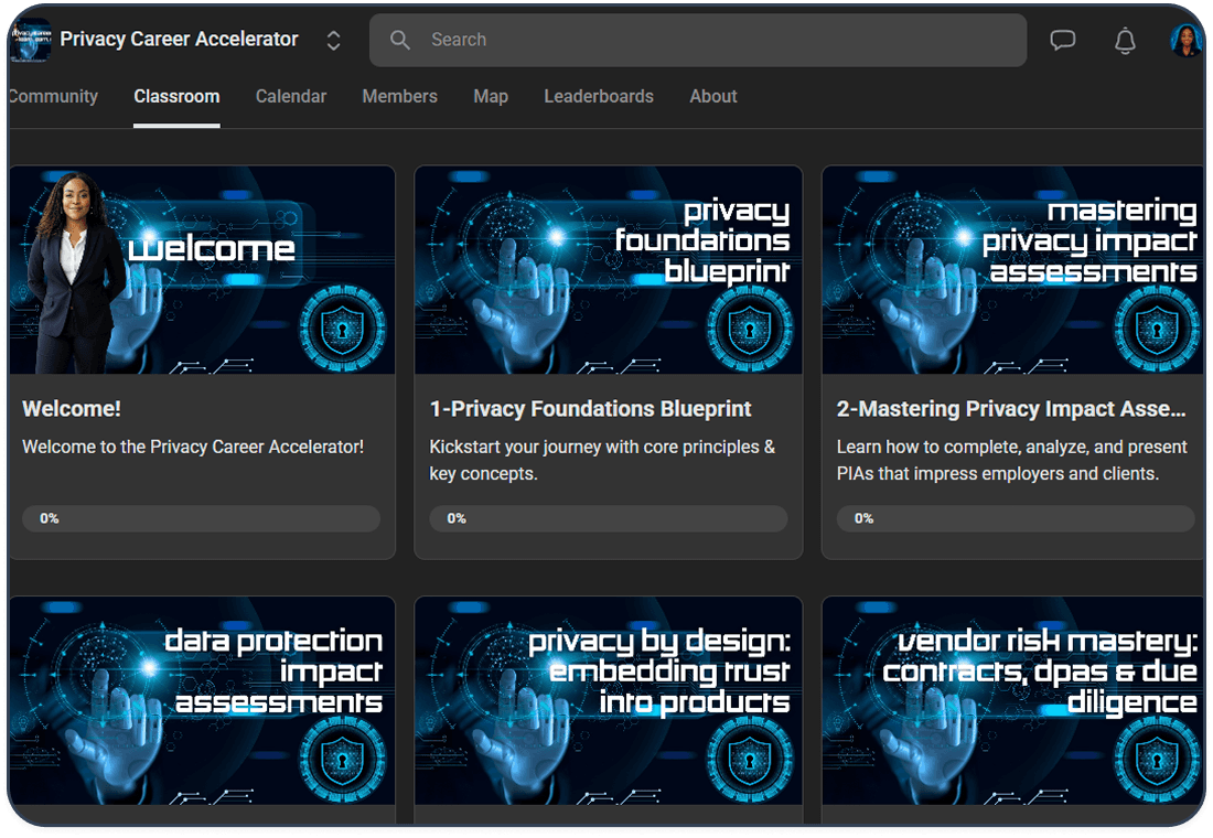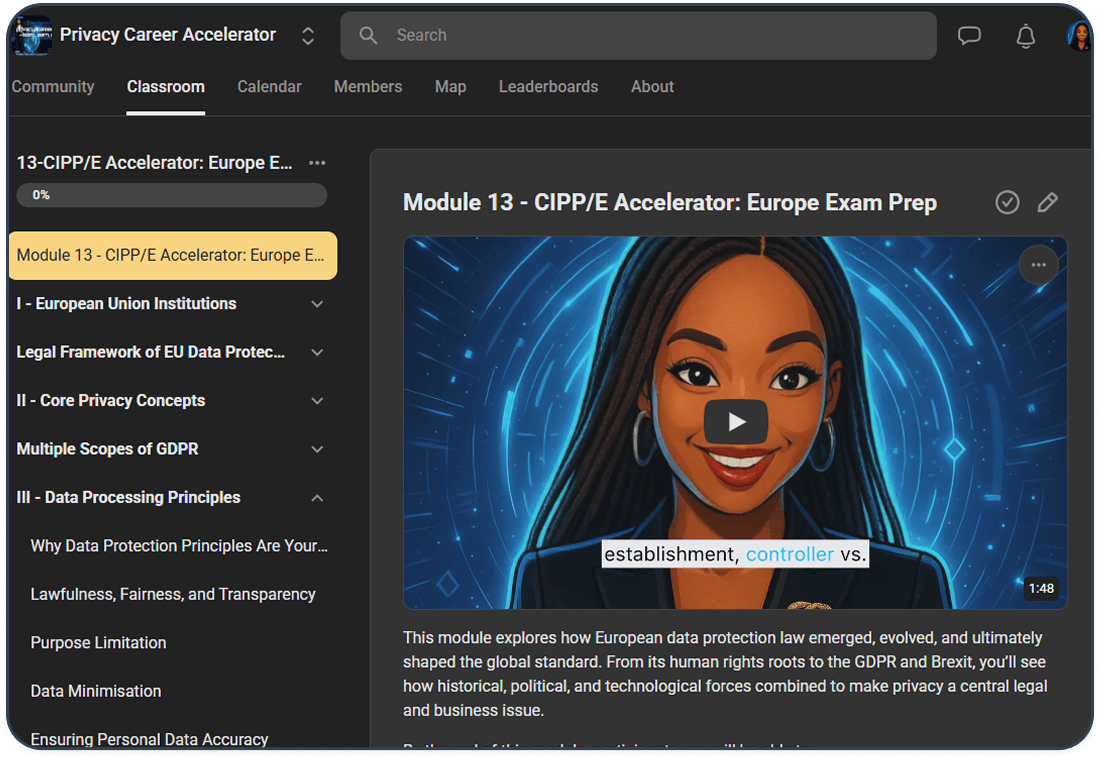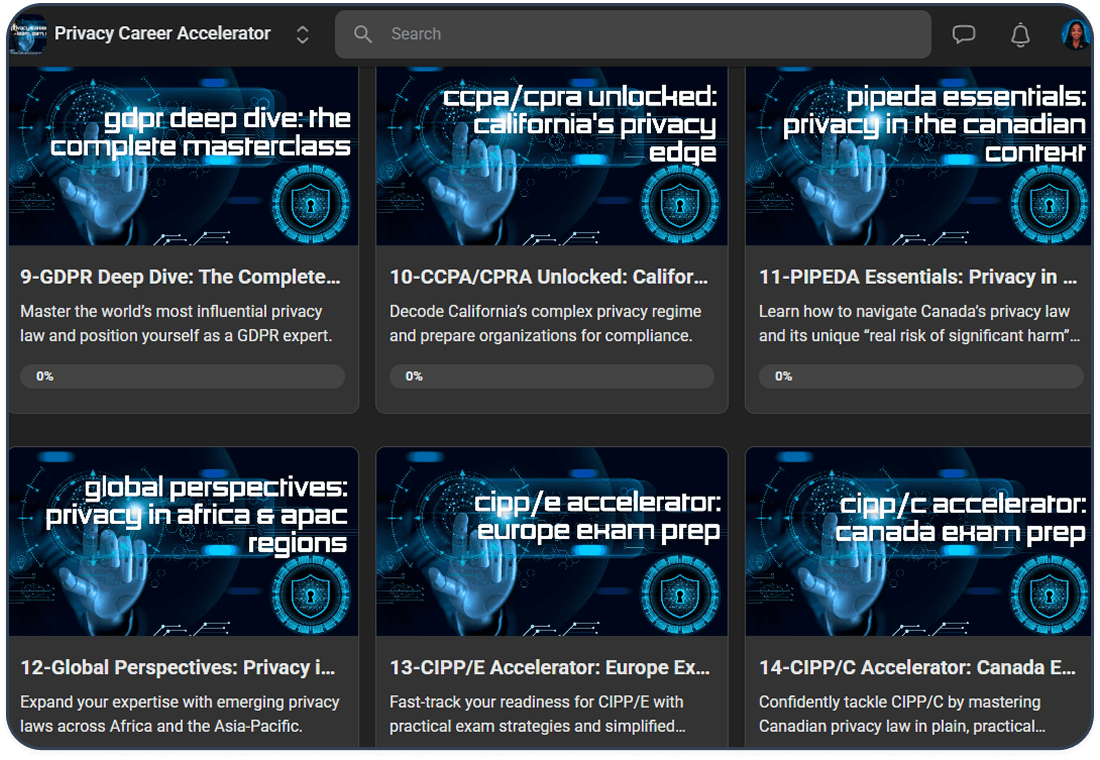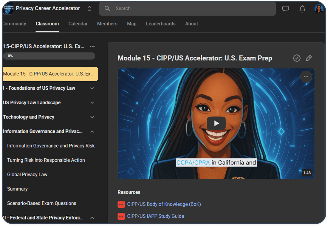 Master CIPP/E, CIPP/US, CIPP/C, CIPM, CIPT, AIGP all in one place - with structured study systems, monetization training, and live coaching support weekly.